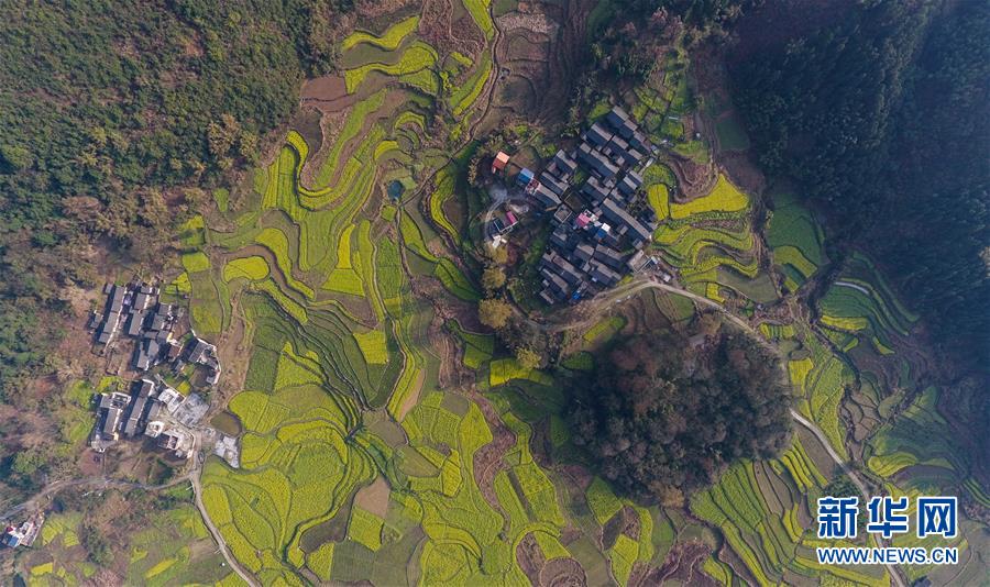 廣西融安縣東起鄉(xiāng)長豐村的田園春色(3月10日無人機拍攝)。 近日,隨著氣溫持續(xù)回升,廣西融安縣境內(nèi)的油菜花開放,春意盎然。 新華社記者 黃孝邦 攝
