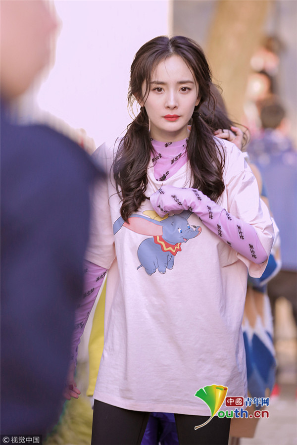 2019年3月12日,湖南長沙,楊冪錄制某綜藝節(jié)目路透曝光。她扎著雙馬尾甜美可愛似少女,穿oversized的牛仔外套和寬大T恤,戴著防曬的護(hù)袖,身材十分纖細(xì)苗條。錄制期間,楊冪氣質(zhì)明艷靈動(dòng)活潑,元?dú)鉂M滿青春感爆棚。