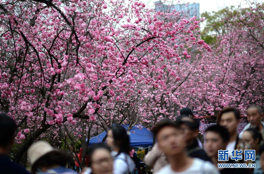 游人在昆明圓通山公園觀賞盛開的櫻花(3月16日攝)。近日,云南省昆明市迎來櫻花盛開的時節(jié)。昆明圓通山公園的數(shù)千株櫻花燦爛綻放,吸引了市民和游客前來觀花賞景。新華社記者秦晴攝