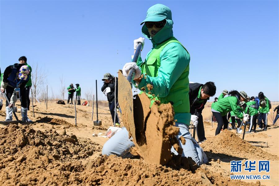 3月31日,參與植樹(shù)活動(dòng)的青年志愿者在挖沙坑。 當(dāng)日,200余名中韓兩國(guó)青年志愿者來(lái)到內(nèi)蒙古自治區(qū)達(dá)拉特旗庫(kù)布其沙漠種樹(shù)。2006年起,中國(guó)國(guó)際青年交流中心與韓國(guó)韓中文化青少年協(xié)會(huì)組織兩國(guó)青年志愿者在庫(kù)布其沙漠植樹(shù),參與防沙固沙項(xiàng)目。截至目前已植樹(shù)850多萬(wàn)株,造林3萬(wàn)多畝。 新華社記者 劉磊 攝