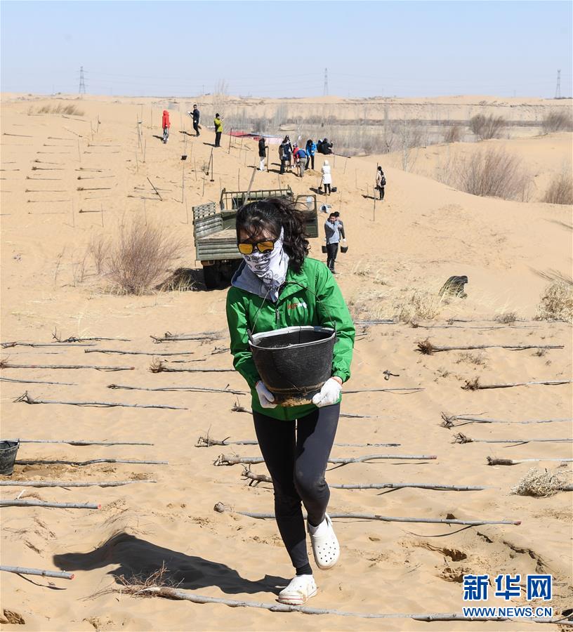 3月31日,中韓青年志愿者在種植新樹(shù)。一旁的老樹(shù)已經(jīng)吐出新芽。 當(dāng)日,200余名中韓兩國(guó)青年志愿者來(lái)到內(nèi)蒙古自治區(qū)達(dá)拉特旗庫(kù)布其沙漠種樹(shù)。2006年起,中國(guó)國(guó)際青年交流中心與韓國(guó)韓中文化青少年協(xié)會(huì)組織兩國(guó)青年志愿者在庫(kù)布其沙漠植樹(shù),參與防沙固沙項(xiàng)目。截至目前已植樹(shù)850多萬(wàn)株,造林3萬(wàn)多畝。 新華社記者 劉磊 攝