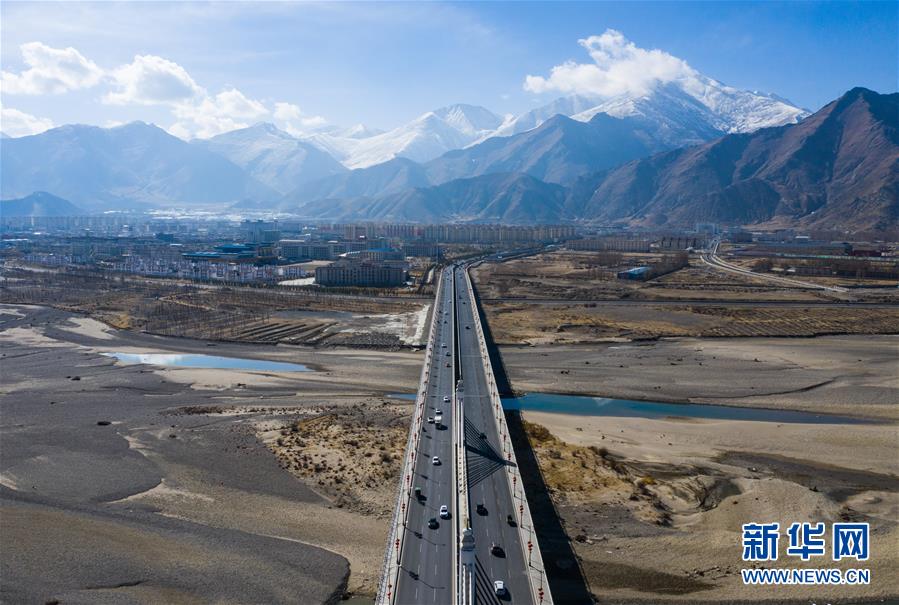 這是拉薩市內(nèi)公路(4月3日無人機(jī)拍攝)。 新華社記者 普布扎西 攝