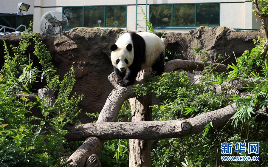 這是4月6日在美國圣迭戈動物園熊貓館拍攝的大熊貓“白云”。新華社記者李穎攝