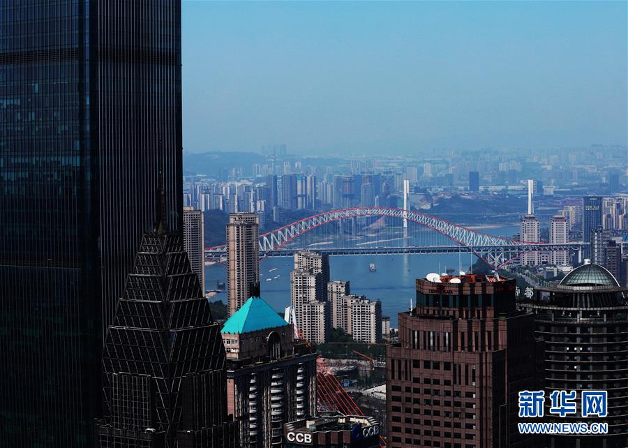 這是4月7日拍攝的重慶城市景象。 千里為重,廣大為慶。城在山水間、山水在城中,重慶頗具特色的立體城市景觀是城市靚麗的名片。 新華社記者 王全超 攝