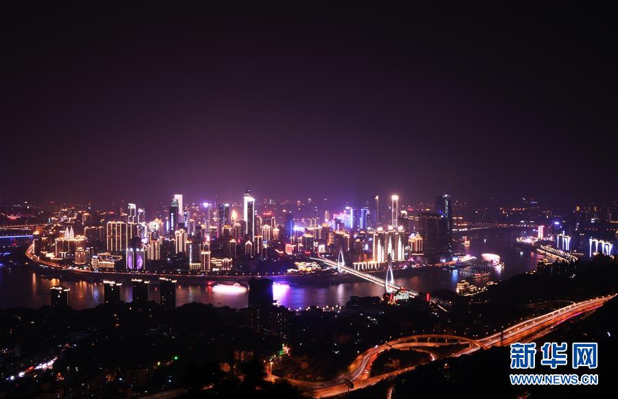 這是4月8日拍攝的重慶城市夜景。 千里為重,廣大為慶。城在山水間、山水在城中,重慶頗具特色的立體城市景觀是城市靚麗的名片。 新華社記者 王全超 攝