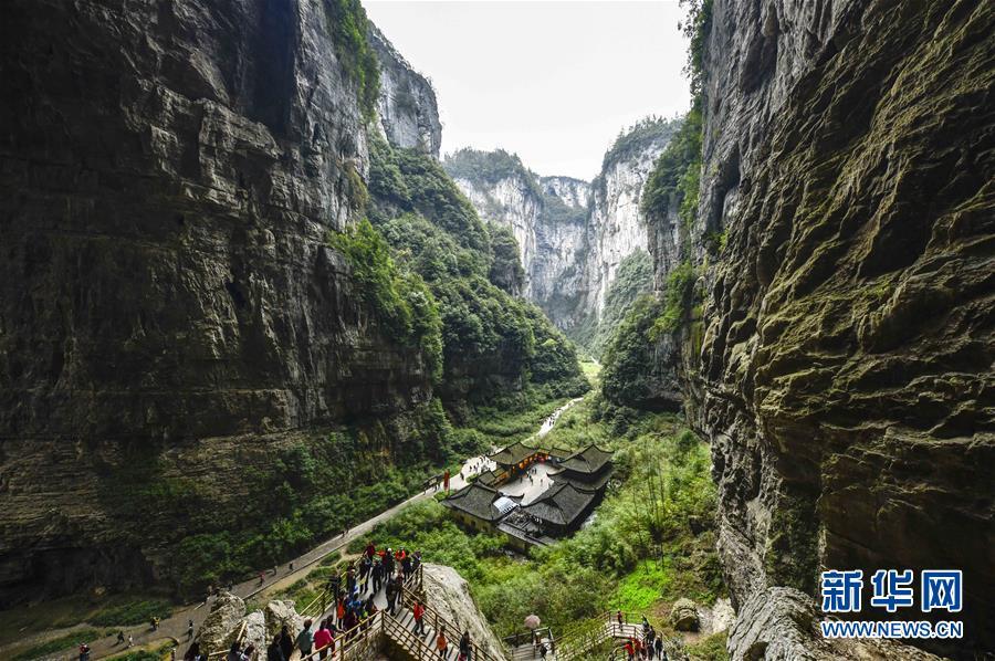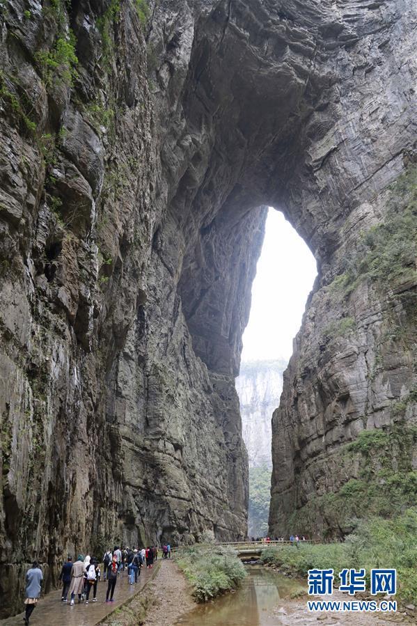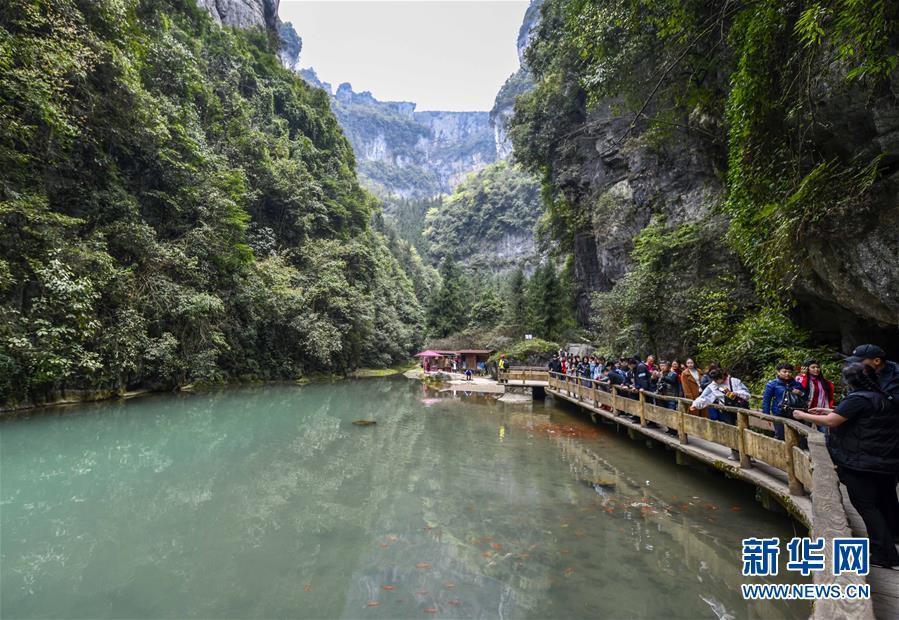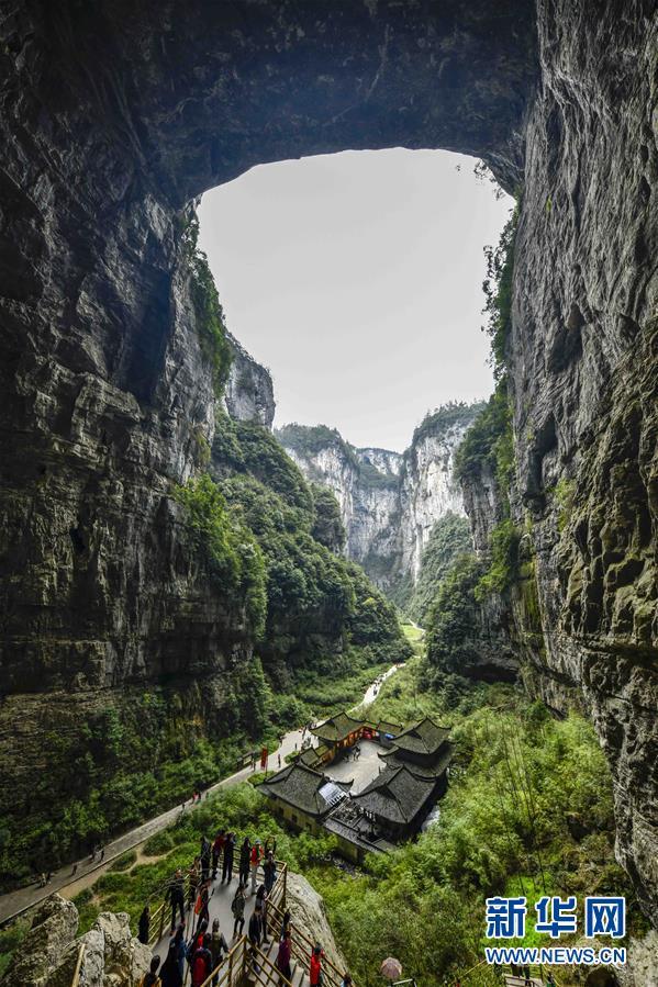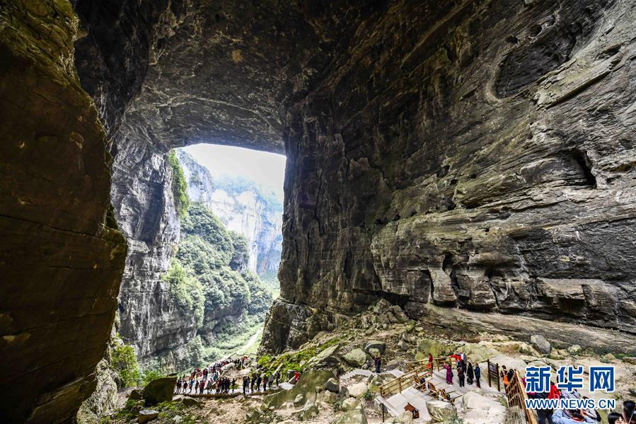 游客在天生三橋景區(qū)游覽(3月27日攝)。 隨著天氣轉(zhuǎn)暖,重慶武隆天生三橋景區(qū)風(fēng)景如畫,氣勢(shì)磅礴的天生石橋和綠意盎然的山林相映成趣,吸引眾多游客前來(lái)踏春賞景。 新華社記者劉潺攝