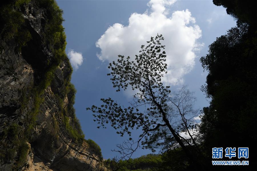 這是4月22日在地洞河天坑底部拍攝的植物。位于陜西省漢中市寧強(qiáng)縣的地洞河天坑,是禪家?guī)r天坑群中規(guī)模最大的一處天坑,坑內(nèi)分布有石鐘乳、石筍,具有極高的地質(zhì)研究?jī)r(jià)值。 新華社記者 張博文 攝
