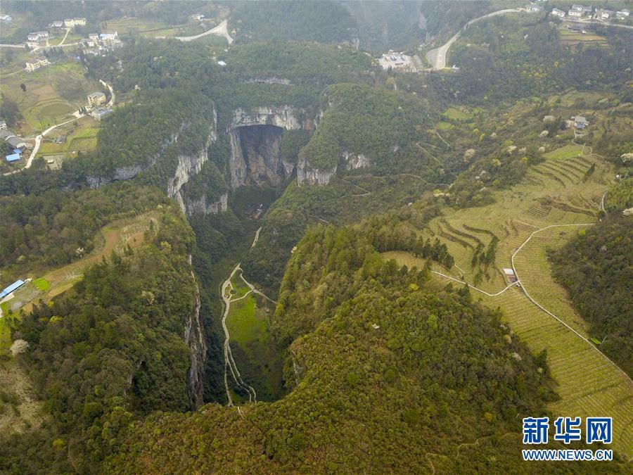 這是在天生三橋景區(qū)拍攝的神鷹天坑景觀(3月27日攝)。 隨著天氣轉(zhuǎn)暖,重慶武隆天生三橋景區(qū)風(fēng)景如畫,氣勢(shì)磅礴的天生石橋和綠意盎然的山林相映成趣,吸引眾多游客前來(lái)踏春賞景。 新華社記者劉潺攝