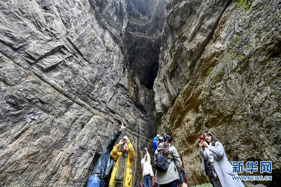 游客在天生三橋景區(qū)內(nèi)的天龍橋景點(diǎn)游覽(3月27日攝)。 隨著天氣轉(zhuǎn)暖,重慶武隆天生三橋景區(qū)風(fēng)景如畫,氣勢(shì)磅礴的天生石橋和綠意盎然的山林相映成趣,吸引眾多游客前來(lái)踏春賞景。 新華社記者劉潺攝