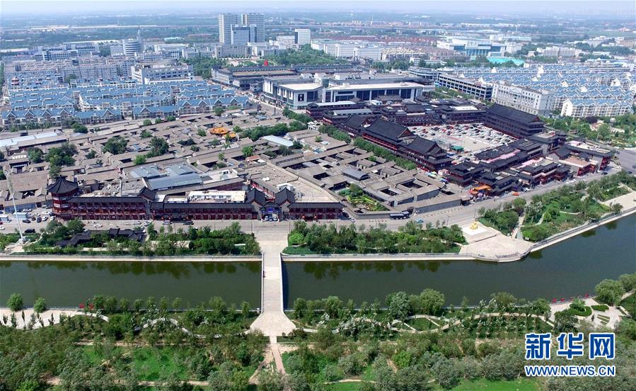 南運(yùn)河北側(cè)的石家大院遺址、仿古建筑群與運(yùn)河形成天津楊柳青古鎮(zhèn)運(yùn)河景觀(2017年7月13日無(wú)人機(jī)拍攝)。 運(yùn)河穿城過(guò),古鎮(zhèn)草色新,千年畫(huà)鄉(xiāng)楊柳青自傳統(tǒng)中浸潤(rùn)出與眾不同的顏色。40年斗轉(zhuǎn)星移,這個(gè)沉淀千年的小鎮(zhèn),用別樣的風(fēng)姿講述了一個(gè)歷史與現(xiàn)在碰撞而出的改革“新”故事。 新華社記者岳月偉攝