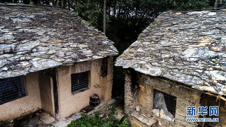 掩映在大山之中的石板房古村落,人去房空(8月7日無(wú)人機(jī)拍攝)。 新華社記者陶明攝