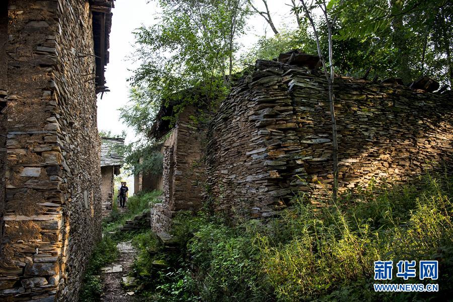 63歲的劉長(zhǎng)鎖老人生于斯長(zhǎng)于斯,整個(gè)村落僅他一人(8月7日攝)。他的孩子2014年搬進(jìn)山下的新居。 新華社記者陶明攝