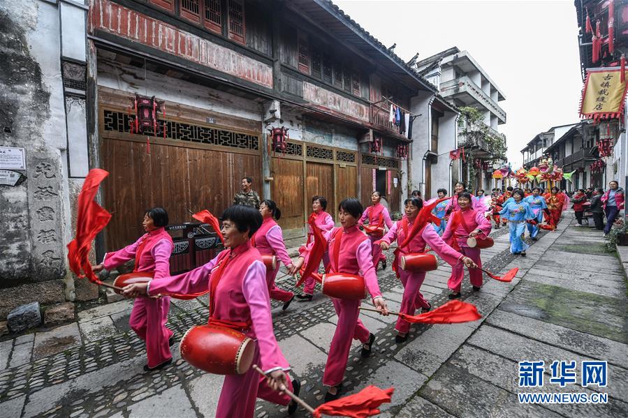 11月19日,河橋古鎮(zhèn)舉行傳統(tǒng)婚俗表演。 新華社記者 徐昱 攝