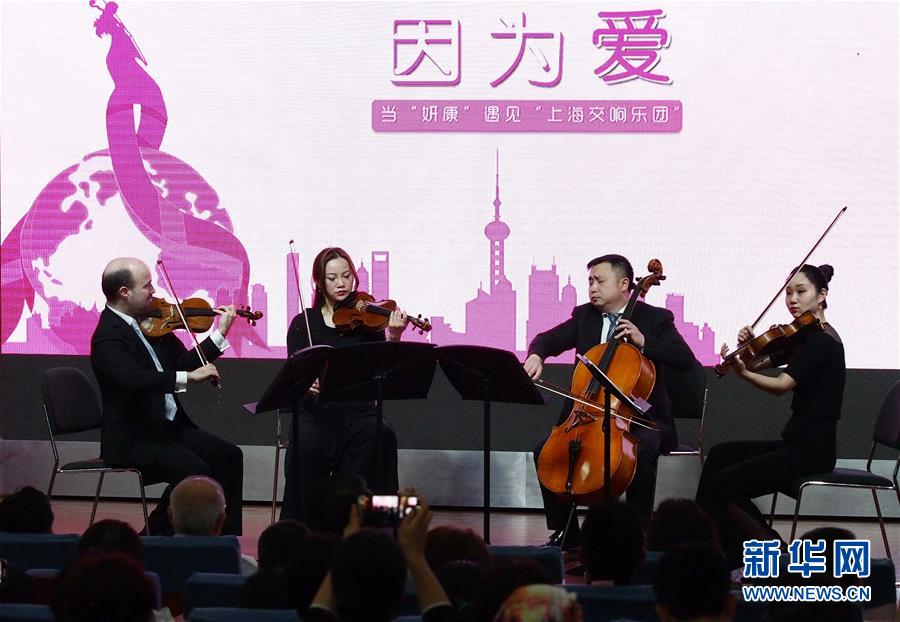 4月25日,上海交響樂團(tuán)的藝術(shù)家在復(fù)旦大學(xué)附屬腫瘤醫(yī)院為患者和醫(yī)護(hù)人員演奏。 當(dāng)日,第一場“全城交響·上交為你而來”音樂會在復(fù)旦大學(xué)附屬腫瘤醫(yī)院報告廳奏響,為患者及醫(yī)護(hù)人員獻(xiàn)上一場專屬音樂會?!叭墙豁憽ど辖粸槟愣鴣怼笔巧虾=豁憳穲F(tuán)2019年向全上海的機(jī)構(gòu)及個人開放的公益演出項目。 新華社記者 任瓏 攝