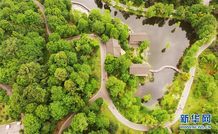 這是5月1日無(wú)人機(jī)拍攝的重慶璧山觀(guān)音塘濕地公園景象。新華社記者 王全超 攝
