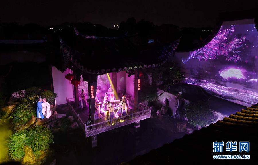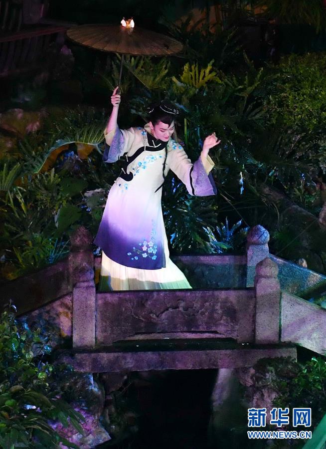 5月5日,演員在福州三坊七巷的水榭戲臺(tái)表演歌舞《煙雨坊巷》。 福州三坊七巷為國(guó)內(nèi)現(xiàn)存規(guī)模較大、保護(hù)較為完整的歷史文化名街區(qū),是中國(guó)十大歷史文化名街之一。位于三坊七巷內(nèi)的水榭戲臺(tái)經(jīng)常舉辦傳統(tǒng)文化演出吸引游客慕名前來(lái)觀(guān)賞。 新華社記者 林善傳 攝