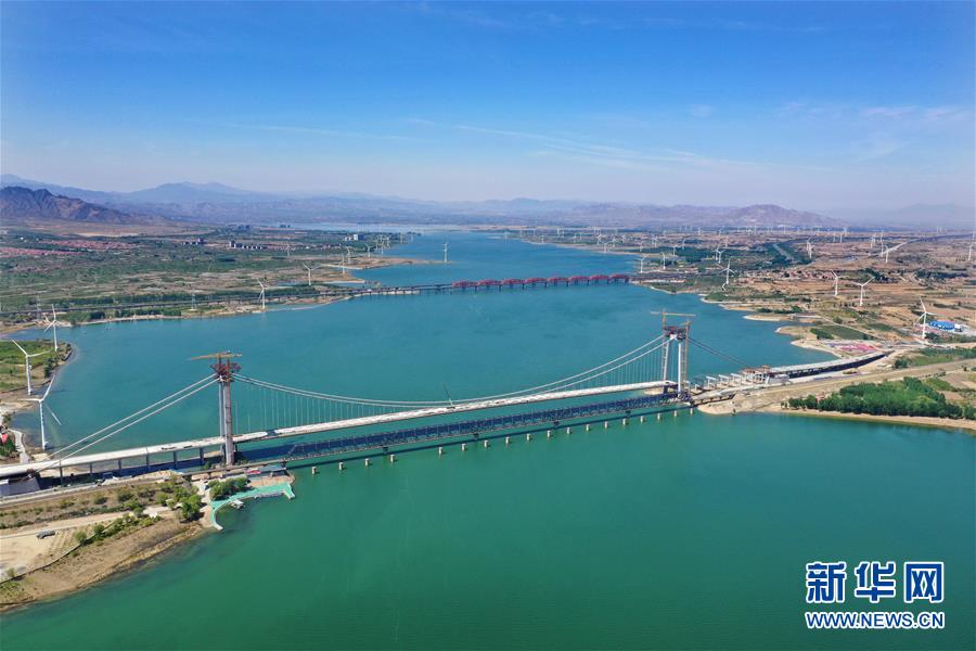建設(shè)中的官廳水庫公路大橋(5月7日無人機(jī)拍攝)。 河北省懷來縣官廳水庫公路大橋是懷來沙城至東花園公路的節(jié)點(diǎn)工程,預(yù)計該橋?qū)⒂?019年6月竣工。 新華社記者 楊世堯 攝