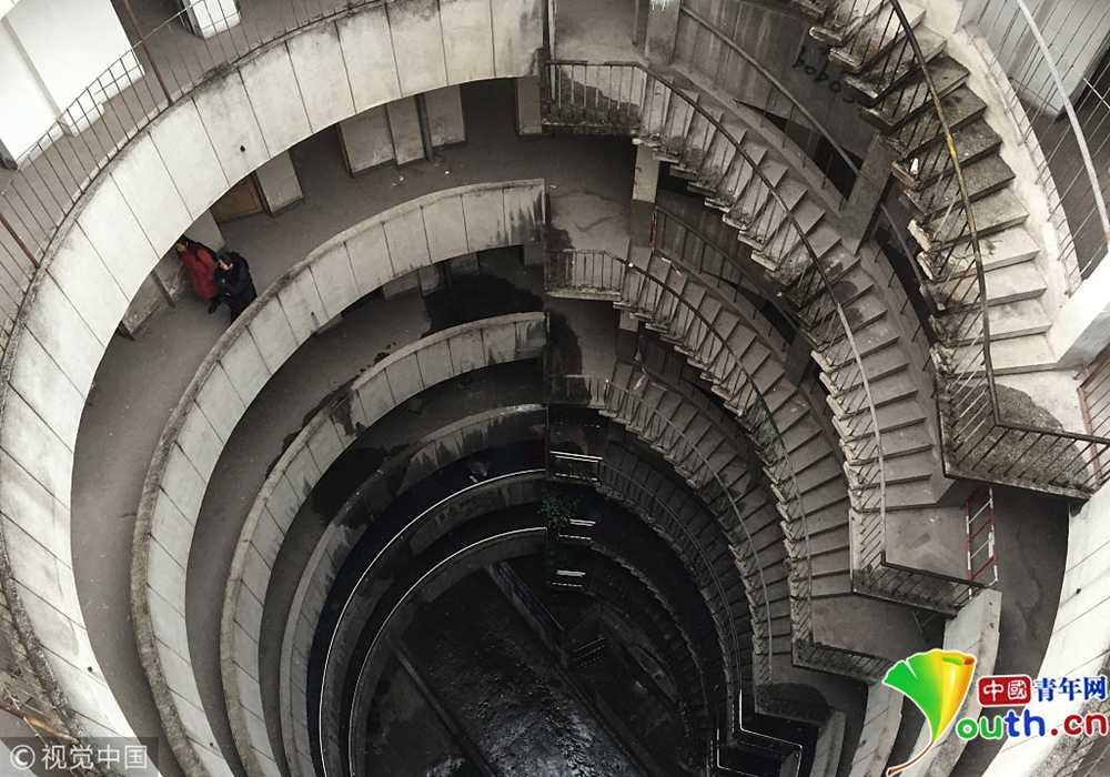2018年12月11日,重慶紅旗河溝汽車站辦公大樓。八層的圓筒型轉(zhuǎn)轉(zhuǎn)樓,站在樓里往上望,可以看見碗口大的天空。圖片作者:尋常