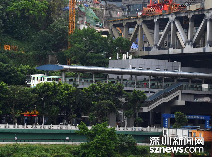 主橋鋼桁梁共44個(gè)節(jié)段,用鋼量約2.4萬(wàn)噸,高栓63萬(wàn)套。主橋上部結(jié)構(gòu)采用雙層橋面鋼桁梁形式,上層為雙向6車道及兩側(cè)人行道,下層為雙線城市軌道交通十號(hào)線,是國(guó)內(nèi)首個(gè)把軌道換乘站建在橋面上的公軌兩用橋。而在曾家?guī)r嘉陵江大橋渝中區(qū)橋頭正下方,則是重慶軌道交通二號(hào)線的曾家?guī)r站,該線路也是重慶最早投入運(yùn)行的軌道交通線路。