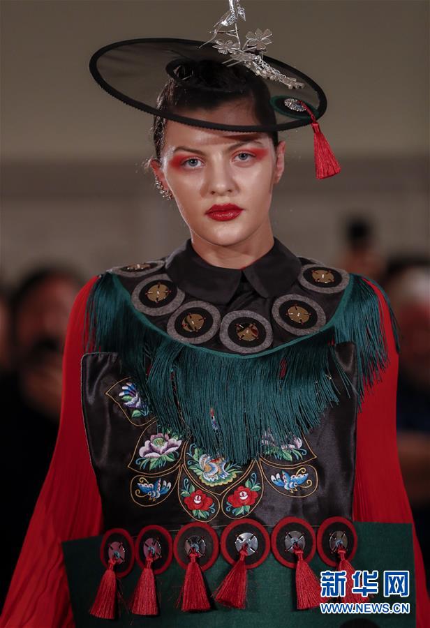 5月8日,一名模特在英國(guó)倫敦走秀。 由浙江省文化和旅游廳舉辦的浙江傳統(tǒng)工藝創(chuàng)新展8日在倫敦開幕。為期4天的展覽是第五屆倫敦手工藝周的重要活動(dòng)之一。 新華社記者 韓巖 攝