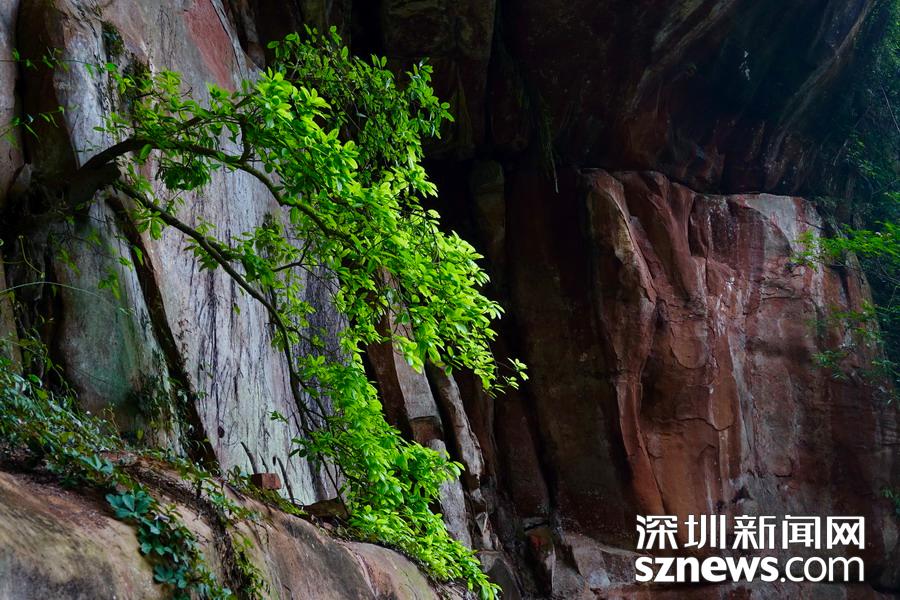 丹霞地貌與大面積古植被和2359 種動(dòng)植物、珍稀瀕危動(dòng)植物共存,是赤水丹霞最獨(dú)特的特征。點(diǎn)綴在原始森林、竹海、桫欏之間,猶如紅寶石鑲嵌在綠洲之中,是世界罕見(jiàn)的綠色丹霞景觀。李仁奇 攝