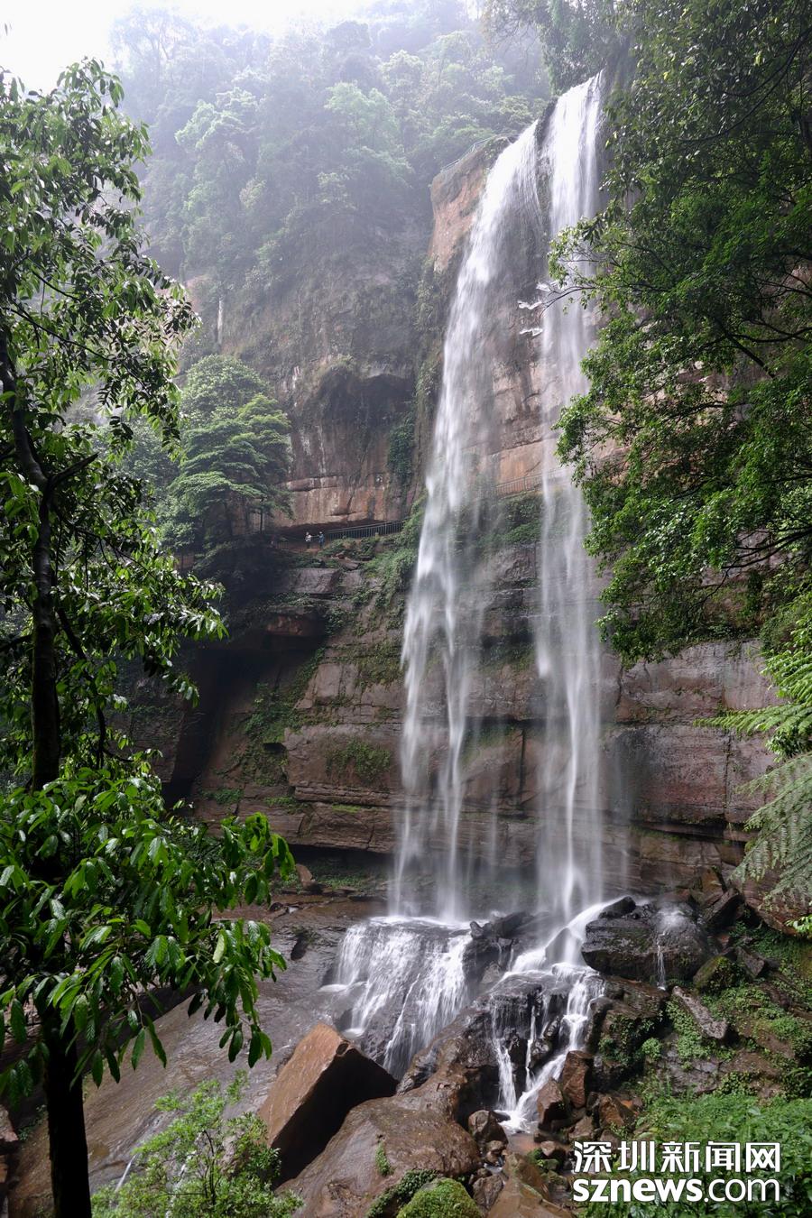 位于兩河口鄉(xiāng)境內(nèi)風(fēng)溪河上游,距市區(qū)38公里,由赤水大瀑布及其周?chē)闹卸雌俨?、蟠龍瀑布、兩河口瀑布、雞飛崖瀑布等構(gòu)成,是一個(gè)天然的瀑布公園。李仁奇 攝