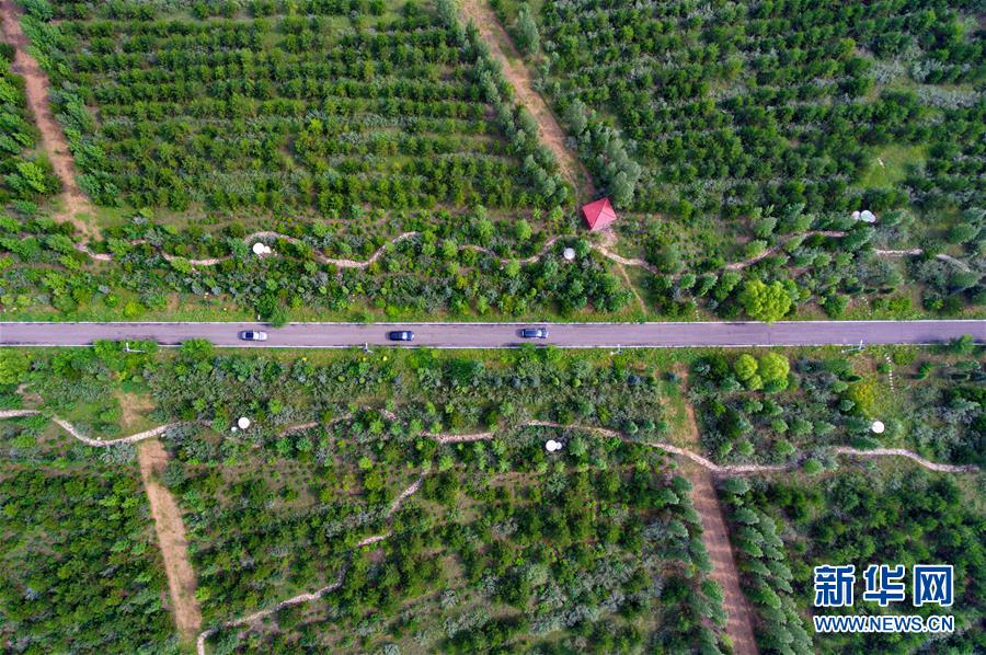 這是2018年8月7日無人機(jī)拍攝的山西省右玉縣小南山森林公園。 新華社記者 曹陽 攝