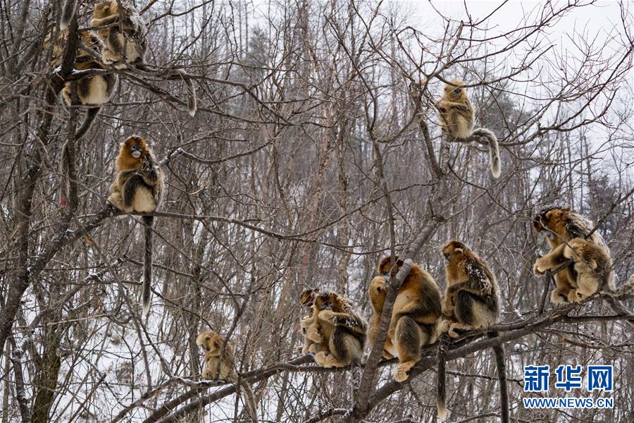 在神農(nóng)架國家公園大龍?zhí)杜臄z的金絲猴(2018年1月25日攝)。 新華社記者 杜華舉 攝