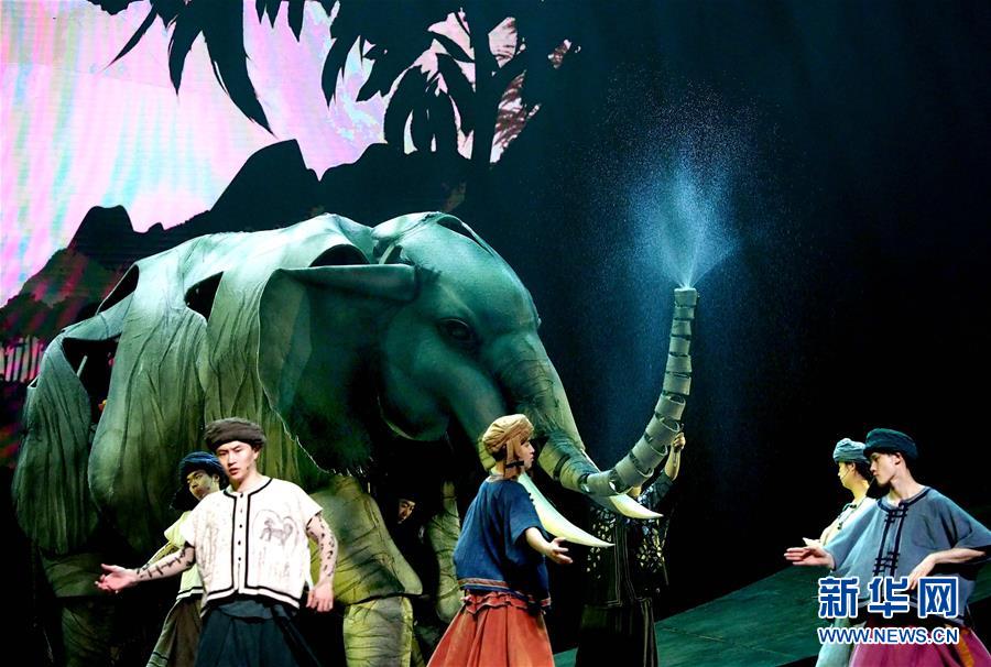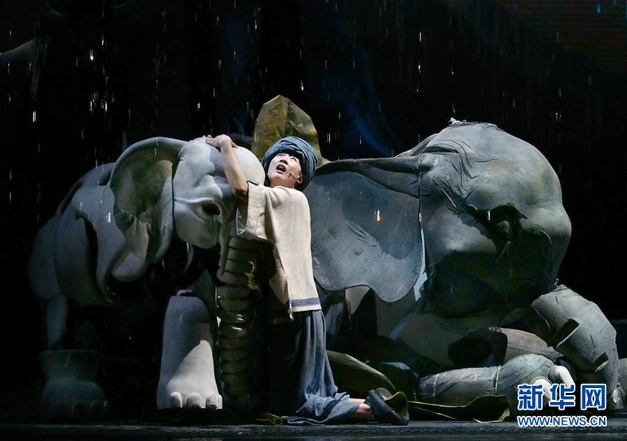 5月15日在上海美琪大戲院拍攝的新版大型人偶舞臺(tái)劇《最后一頭戰(zhàn)象》劇照。 當(dāng)日,作為第12屆中國(guó)藝術(shù)節(jié)的參演劇目,大型人偶舞臺(tái)劇《最后一頭戰(zhàn)象》在經(jīng)過(guò)4次硬件技術(shù)升級(jí)和故事修改后亮相上海美琪大戲院。 新華社記者 任瓏 攝