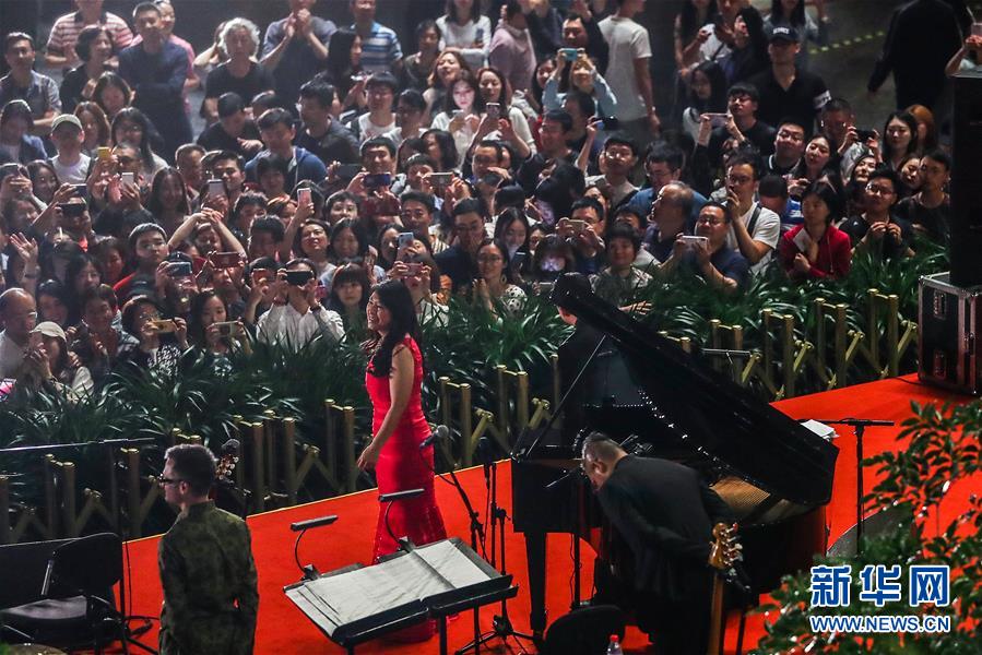 5月19日凌晨,歌手小野麗莎在北京國(guó)家大劇院“午夜玫瑰”爵士樂(lè)專(zhuān)場(chǎng)音樂(lè)會(huì)結(jié)束后攜樂(lè)團(tuán)謝幕。 5月18日晚,作為亞洲文化展演活動(dòng)的演出之一,著名爵士歌手小野麗莎攜樂(lè)團(tuán)首次登臺(tái)國(guó)家大劇院,亮相“午夜玫瑰”爵士樂(lè)專(zhuān)場(chǎng)音樂(lè)會(huì)。 新華社記者 張玉薇 攝