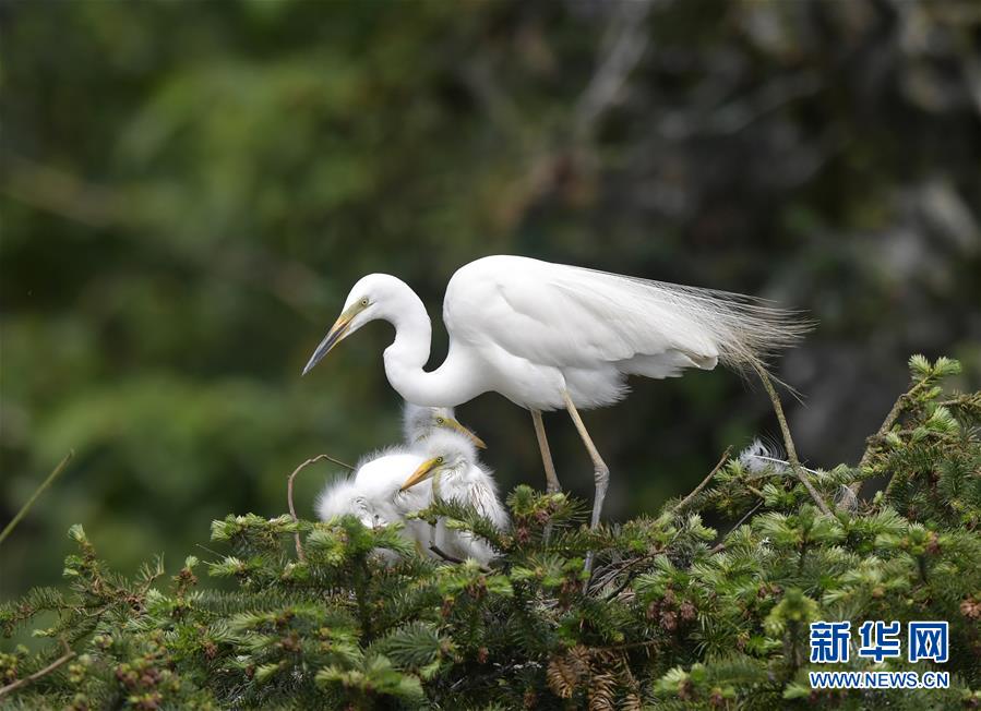 在江西省南昌市新建區(qū)象山森林公園內(nèi),白鷺和自己的雛鳥在一起(5月21日攝)。 近日,在江西省南昌市新建區(qū)象山森林公園內(nèi),已安家筑巢的大批鷺鳥陸續(xù)孵化出了后代。象山森林公園有著“鷺鳥王國(guó)”的美譽(yù),生態(tài)環(huán)境良好,每年都會(huì)吸引白鷺、蒼鷺、夜鷺等種類的鷺鳥飛抵棲息和繁衍后代。 新華社記者 彭昭之 攝