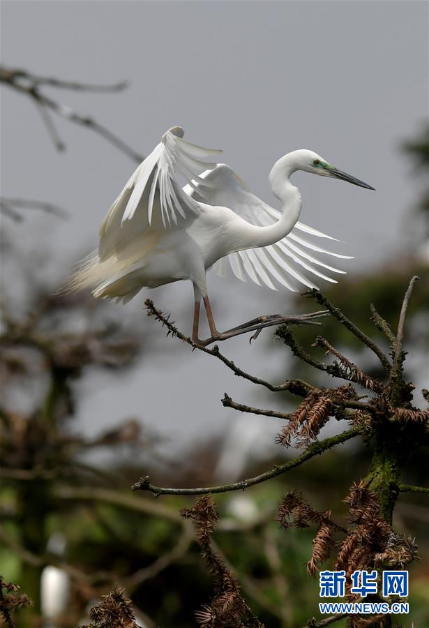 在江西省南昌市新建區(qū)象山森林公園內(nèi),一只白鷺正降落在枝頭(5月21日攝)。 近日,在江西省南昌市新建區(qū)象山森林公園內(nèi),已安家筑巢的大批鷺鳥陸續(xù)孵化出了后代。象山森林公園有著“鷺鳥王國(guó)”的美譽(yù),生態(tài)環(huán)境良好,每年都會(huì)吸引白鷺、蒼鷺、夜鷺等種類的鷺鳥飛抵棲息和繁衍后代。 新華社記者 彭昭之 攝