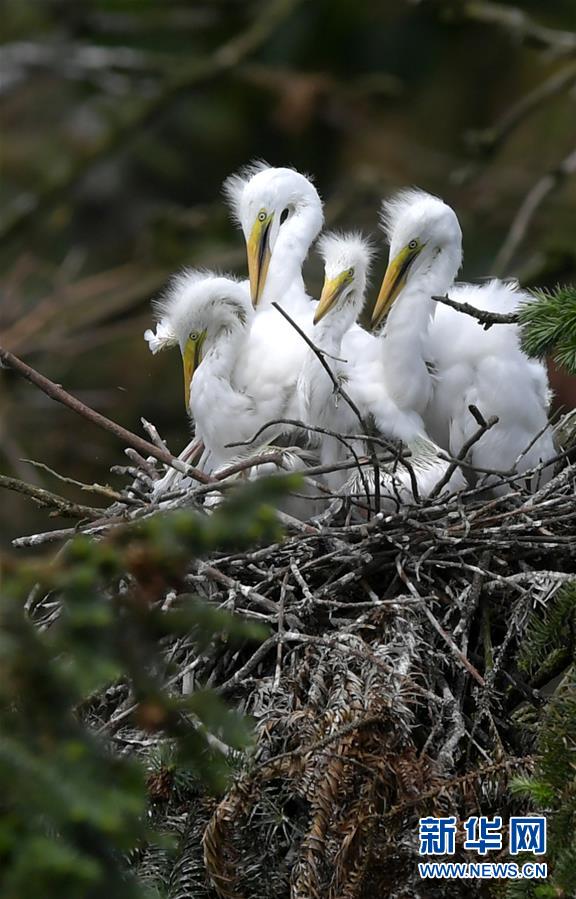 江西省南昌市新建區(qū)象山森林公園內(nèi)的白鷺雛鳥(5月21日攝)。 近日,在江西省南昌市新建區(qū)象山森林公園內(nèi),已安家筑巢的大批鷺鳥陸續(xù)孵化出了后代。象山森林公園有著“鷺鳥王國(guó)”的美譽(yù),生態(tài)環(huán)境良好,每年都會(huì)吸引白鷺、蒼鷺、夜鷺等種類的鷺鳥飛抵棲息和繁衍后代。 新華社記者 彭昭之 攝