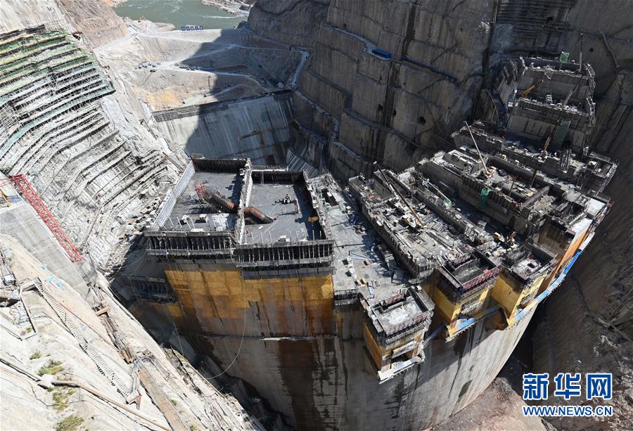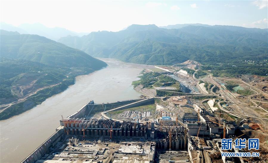 這是用無人機拍攝的建設中的烏東德水電站全景(5月30日攝)。 新華社記者陳曄華攝