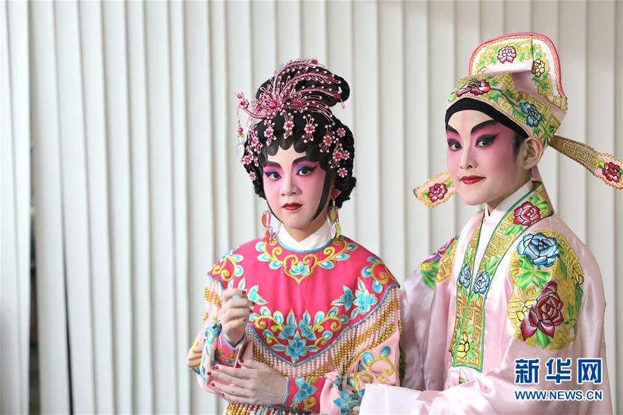陸瑞徽(左)和利文喆在表演折子戲《艷曲醉周郎》(6月8日攝)。 聲輝粵劇推廣協(xié)會(huì)成立于2003年,是香港重要粵劇藝術(shù)團(tuán)體之一,致力于向青少年推廣粵劇。協(xié)會(huì)目前有兩個(gè)初班,3個(gè)中班,一個(gè)青少年班?;泟∮址Q“廣東大戲”,表演技藝包括“唱做念打”,即唱功、身段、臺(tái)詞、武打,主要流行于廣東、廣西和香港、澳門等地區(qū)。2009年,粵劇被列入聯(lián)合國教科文組織人類非物質(zhì)文化遺產(chǎn)代表作名錄,今年正逢十周年。 新華社記者 吳曉初 攝