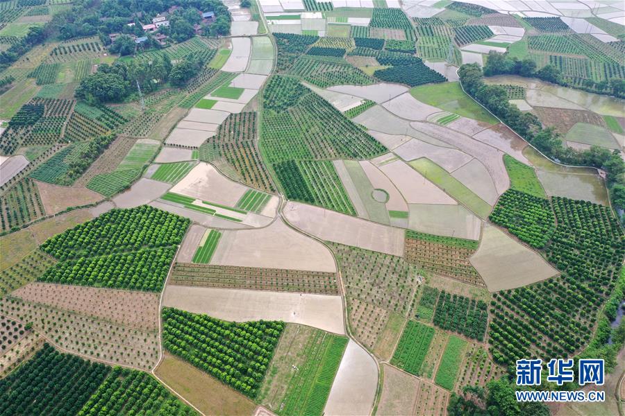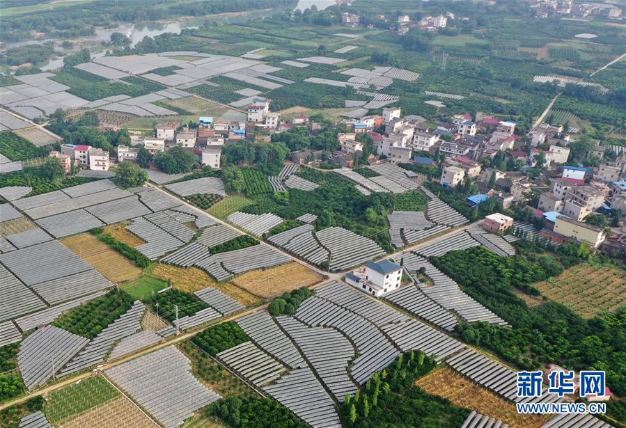 這是廣西全州縣鳳凰鎮(zhèn)鳳凰嘴渡口附近的田園(6月29日無人機(jī)拍攝)。 新華社記者 陸波岸 攝