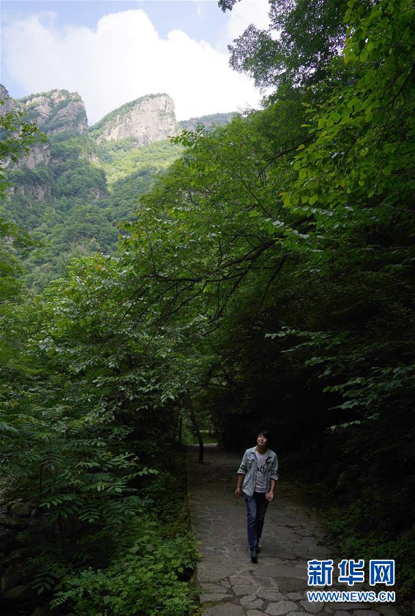 7月10日,游客在太白縣青峰峽景區(qū)游覽。 陜西太白縣青峰峽國(guó)家級(jí)森林公園位于秦嶺主峰太白山北麓,這里青山疊嶂,瀑布穿流,氣候涼爽,年平均氣溫7.6攝氏度,成為炎炎夏日中人們避暑休閑的好去處。 新華社記者 邵瑞 攝