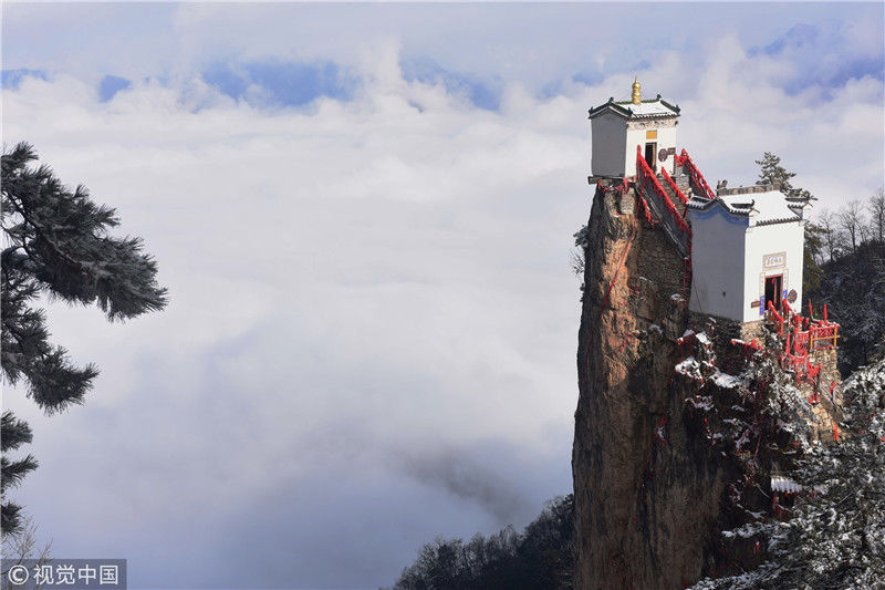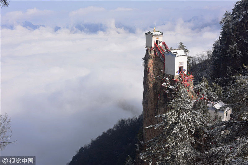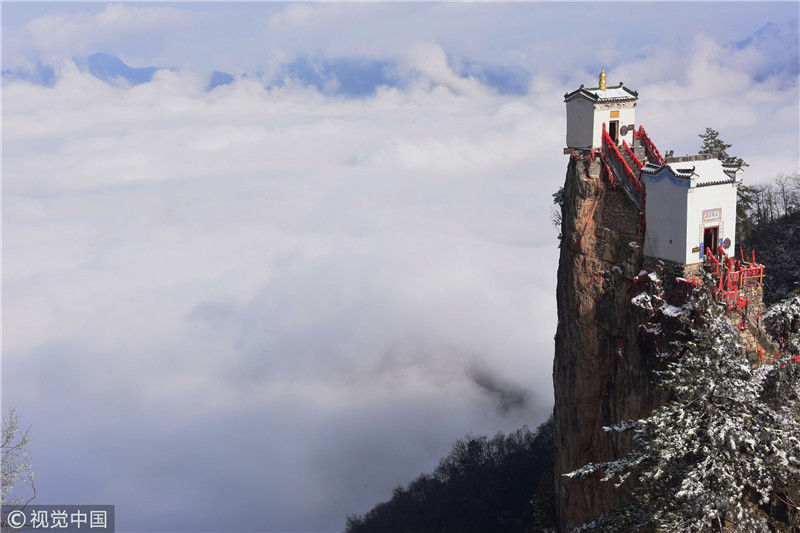 3月3日拍攝的塔云山金頂觀音殿。雪后初霽,秦嶺深處的塔云山景區(qū)云海翻騰,宛如仙境。位于陜西省鎮(zhèn)安縣柴坪鎮(zhèn)境內(nèi)的塔云山,其主峰上的古建筑群始建于明正德年間,其中金頂觀音殿建于塔云山萬(wàn)仞絕頂之上,遠(yuǎn)遠(yuǎn)望去,壯觀無(wú)比。 新華社記者陶明攝