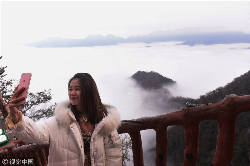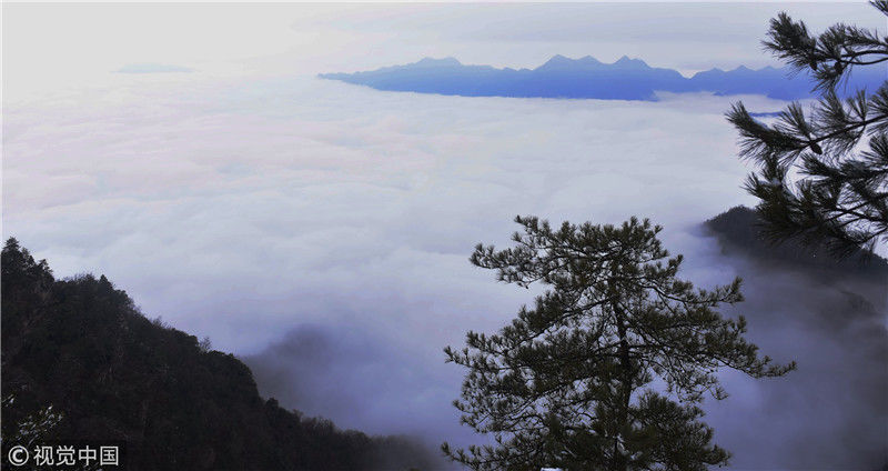 2019年3月3日,陜西商洛,位于鎮(zhèn)安縣的塔云山景區(qū)云海翻騰,宛如仙境。袁景智/視覺(jué)中國(guó) 編輯/陳進(jìn)