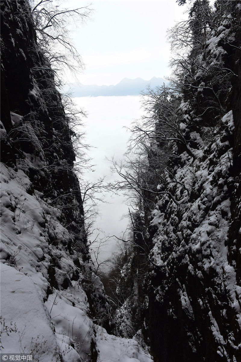 2019年3月3日,陜西商洛,位于鎮(zhèn)安縣的塔云山景區(qū)云海翻騰,宛如仙境。