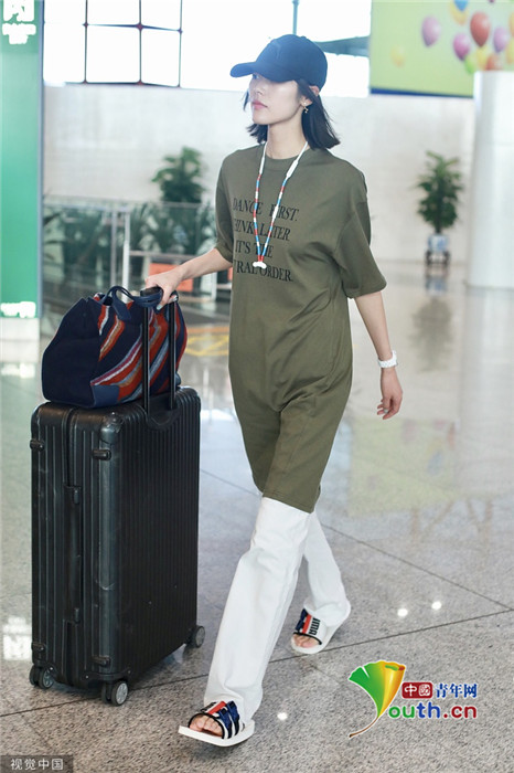 2019年7月23日,北京,劉雯現(xiàn)身機(jī)場(chǎng)。她頭戴棒球帽,身穿oversize上衣腳踩拖鞋,走慵懶隨性風(fēng),盡顯超模氣場(chǎng),露出招牌笑容親切又有感染力。