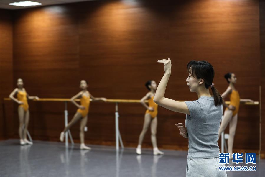 4月12日,遼寧芭蕾舞團附屬芭蕾舞蹈學校的老師張夢妮在為一年級的學生上芭蕾基訓課。新華社記者 潘昱龍 攝