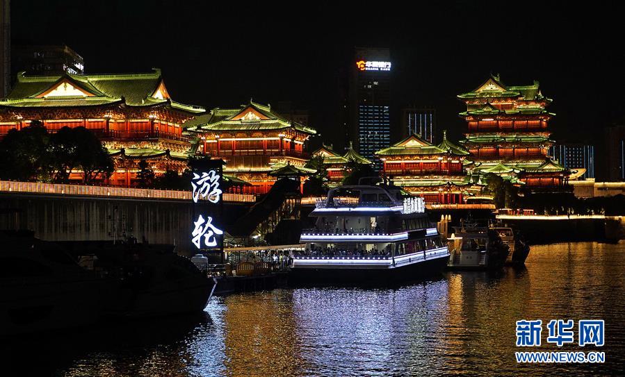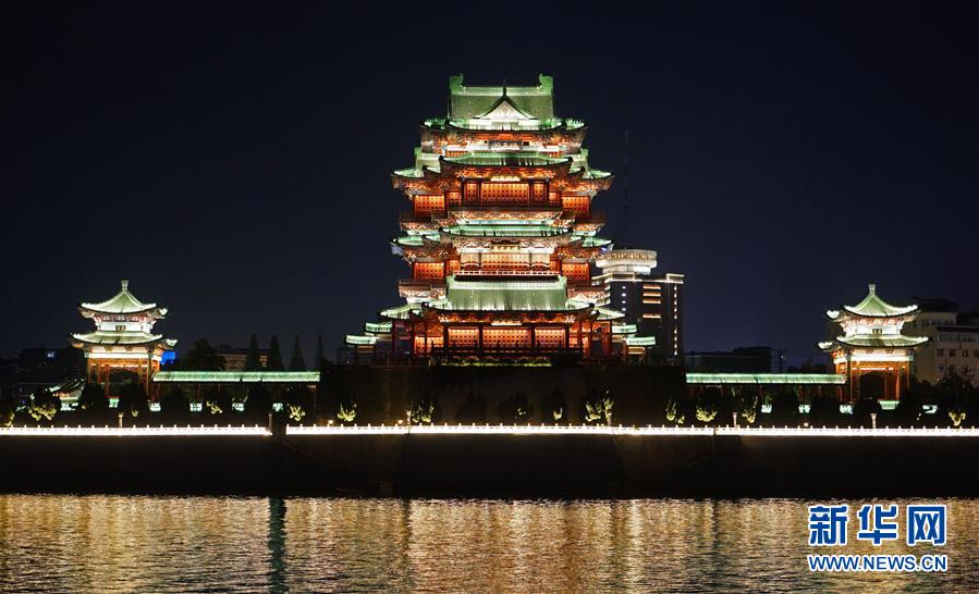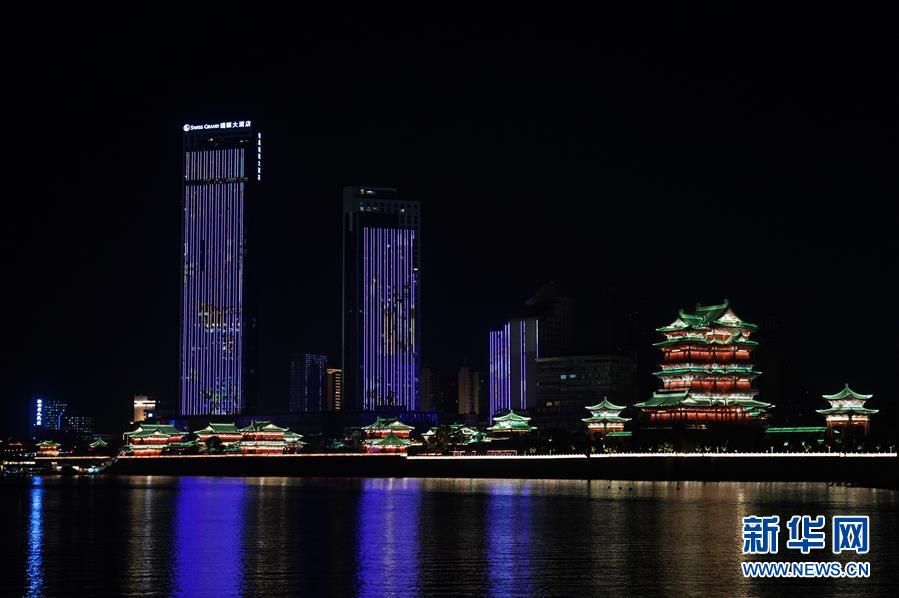 這是江西南昌贛江畔上演的燈光秀(8月6日攝)。 夏季,江西南昌市贛江畔高樓燈光璀璨,五光十色的燈光組成了壯觀的燈光秀,吸引了大批游客。據(jù)介紹,近年來,南昌為發(fā)展“夜經(jīng)濟(jì)”,著力打造夜游項目,夜游項目以滕王閣為核心,借助贛江兩岸景觀照明,結(jié)合同步音效,打造立體、動態(tài)、富有江西元素的風(fēng)景,讓游客感受夜景的美麗和江西的歷史文化。 新華社記者 萬象 攝