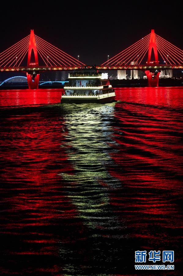 在江西南昌,一艘游輪行駛在贛江上(8月6日攝)。 新華社記者 萬象 攝
