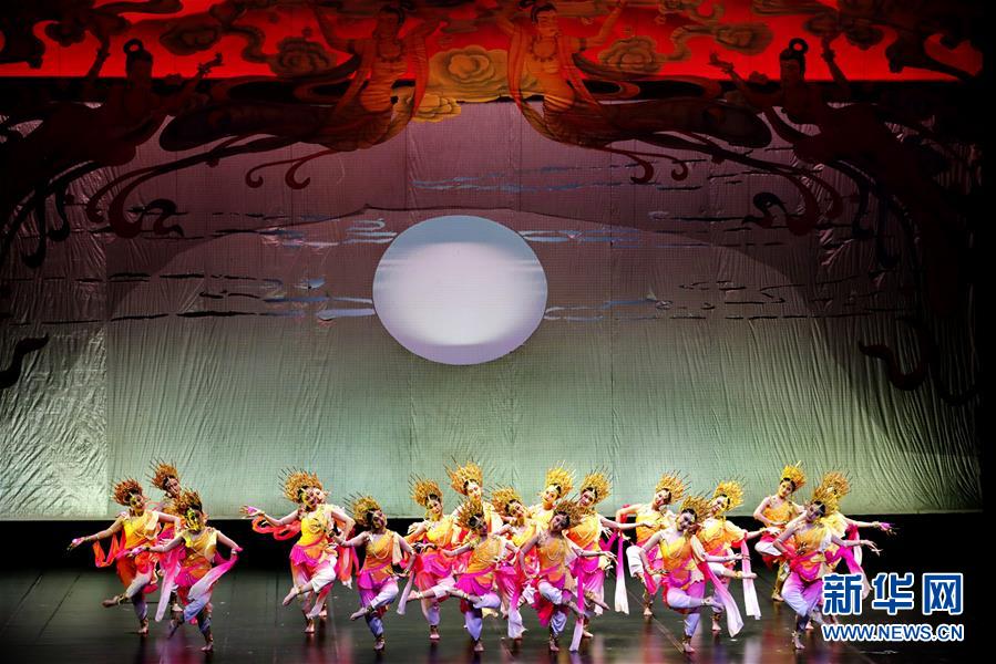 8月7日晚,舞蹈演員們在表演中。 當日,“舞出中國風”慶祝新中國成立70周年公益展演在上海國際舞蹈中心舉行。舞蹈家黃豆豆攜手30位青年舞者進行志愿演出,并與多家藝術團隊合作,共同呈現(xiàn)了一臺具有濃郁中國風的原創(chuàng)舞專場,為新中國成立70周年獻禮。 新華社記者 劉穎 攝