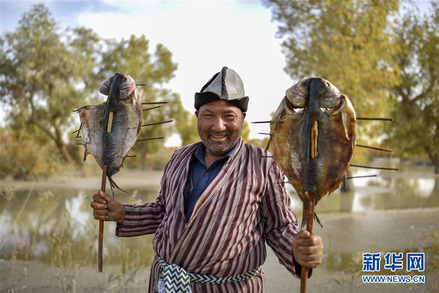 羅布人村寨位于新疆巴音郭楞蒙古自治州尉犁縣,塔里木河從這里流過,沙漠、胡楊、湖泊的奇妙組合吸引了不少游客。生活在這里的羅布人阿木東·艾不東更成為大家關(guān)注的焦點(diǎn)。 阿木東·艾不東61歲,聲音洪亮,面色紅潤,平時(shí)喜歡穿著羅布麻紡織而成的對襟長袍和羊毛氈制成的船形帽子,這是羅布人的傳統(tǒng)裝扮。 如今,許多羅布人不再以打魚為生,他們有的放牧,有的種植,有的開設(shè)店鋪……像阿木東一樣在沙漠中漁獵的羅布人已經(jīng)很少了。 制作羅布人傳統(tǒng)美食——紅柳烤魚是阿木東的拿手絕活。一根紅柳,穿起一條野魚,起一堆炭火,撒少許鹽巴,就可以靜待皮焦肉嫩的紅柳烤魚了。除了傳統(tǒng)口味外,阿木東對羅布烤魚進(jìn)行了改良。“我秘制了一種烤魚醬,里面除了辣椒、鹽巴、孜然,還有其他佐料?!碑?dāng)問起具體是哪些配方時(shí),阿木東笑著說:“還有就是塔里木河的味道!” 阿木東是一個(gè)閑不住的人。旅游旺季過后,他會制作卡盆(胡楊制作的獨(dú)木舟)模型、胡楊筆筒等,等旺季來臨再把這些小物件賣出去。 兩千年前,塔里木河與孔雀河載著天山、昆侖山的雪水,把羅布泊充盈得煙波浩渺。羅布人靠羅布泊水域和周圍的濕地及原始胡楊林繁衍生息。后來,塔里木河下游河床被風(fēng)沙淤塞,干旱斷絕了綠色。2001年,塔里木河流域近期綜合治理項(xiàng)目啟動。隨著下游河道兩岸地下水位的抬升,相當(dāng)數(shù)量的胡楊從死亡的邊緣“醒來”,重新護(hù)佑這里的綠洲與百姓。 近幾年,阿木東生活的地方基礎(chǔ)設(shè)施大為改善,柏油馬路修到了塔里木河畔。前來領(lǐng)略大漠胡楊的游客也越來越多。據(jù)了解,截至7月底,尉犁縣今年已接待游客78萬人次,旅游總收入超過1.1億元,同比分別增長63.14%和119.42%。 新華社記者 趙戈 攝
