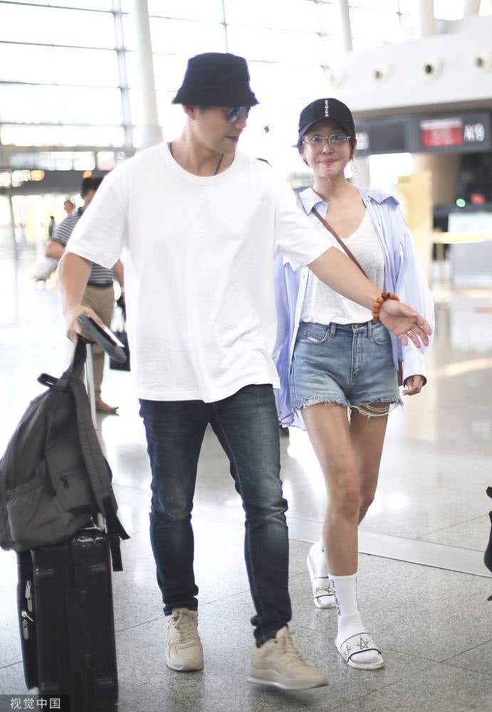 2019年8月19日,長沙,嚴屹寬、杜若溪夫婦現身機場。辦完登機手續(xù)后嚴屹寬主動拎過所有行李,妥妥的模范老公,而美美的杜若溪素顏亮相,大玩下衣失蹤秀美腿,襪子上的“相當暴躁”有點意思!