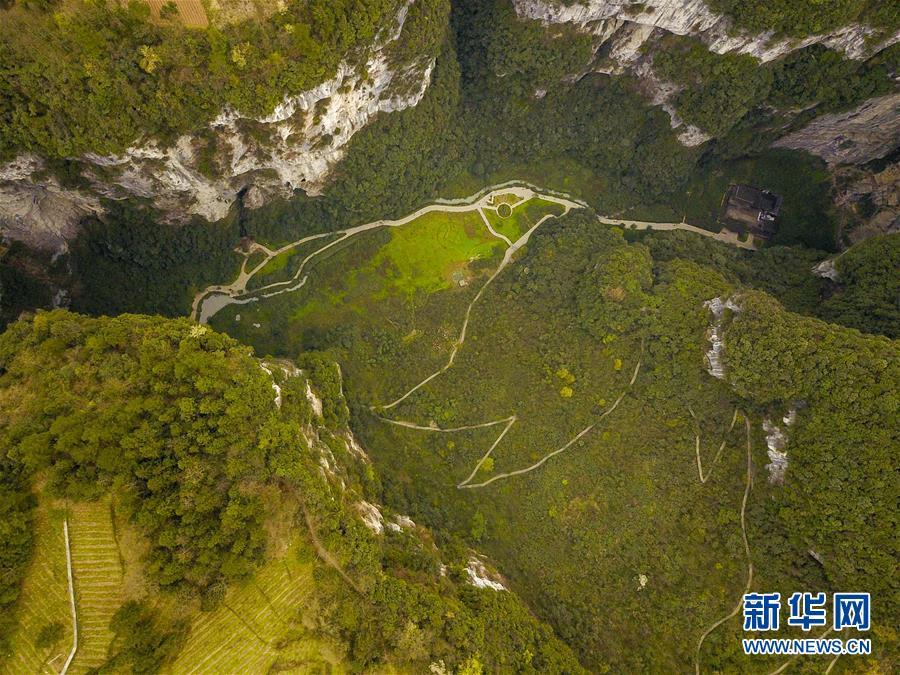 這是3月27日拍攝的天生三橋景區(qū)(無(wú)人機(jī)拍攝)。 新華社記者劉潺攝
