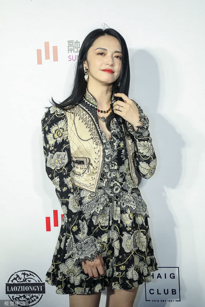 女演員姚晨亮相,穿黑白泡泡袖印花連衣裙,戴項(xiàng)鏈優(yōu)雅迷人