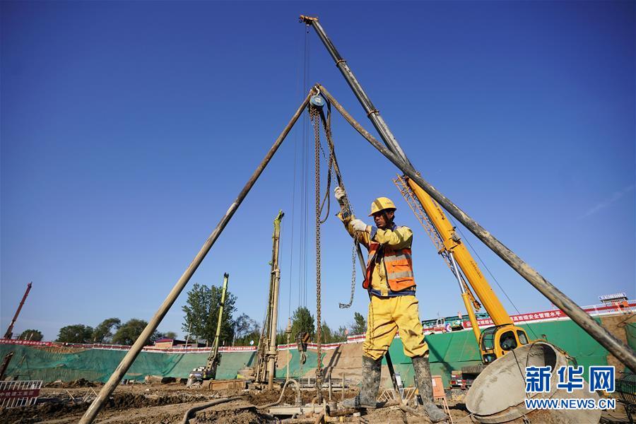 5月1日,中鐵建工的建設者在雄安高鐵站施工。 “五一”小長假期間,建設者仍然在雄安高鐵站的建設工地上忙碌。 新華社記者 邢廣利 攝